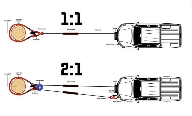 Using a 2:1 setup also halves the load on the winch and rope. It's not just about getting unstuck; it's about extending the life of my gear and reducing the chance of a breakdown when I need it most. And because Saber focuses on soft gear – like the Ring and soft shackles – the risk of flying metal projectiles is dramatically reduced, which makes a huge difference for safety.